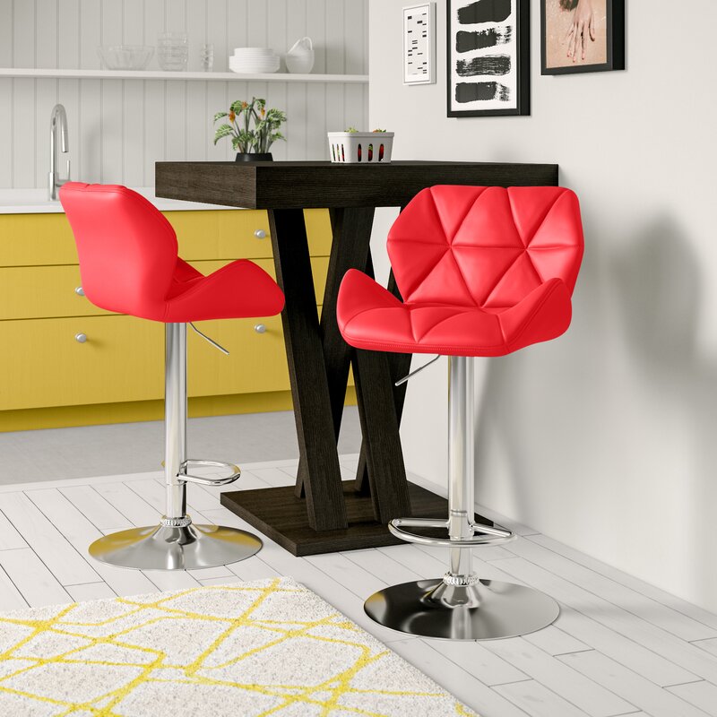These Red Bucket Seat Barstool are a perfect match for pulling up to a pub table or making the kitchen island more eye-catching, this bold bar stool effortlessly pairs style and utility. Crafted from metal finished in polished chrome, its pedestal base is adjustable and features a curved footrest.